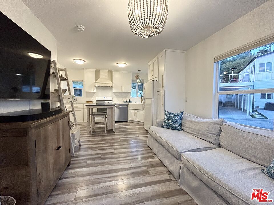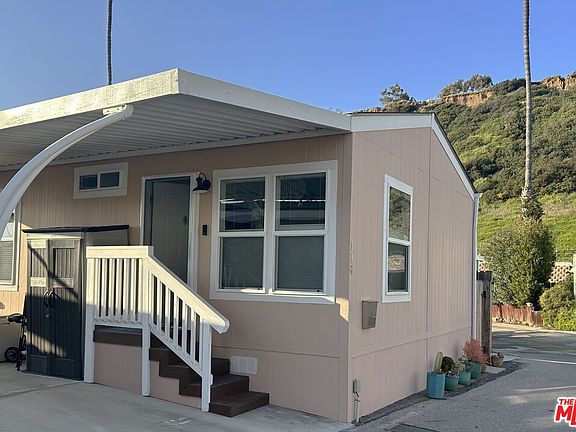 LIVE AT THE BEACH ! A modern, Chic custom - designed 2017 beach home located in the Pacific Palisades seconds from sand and surf. Ability to build a deck over the 2-car tandem carport allowing direct ocean views. This charming two-bedroom, one bathroom with an abundance of natural light and open living space captures the lush, tropical landscaping that creates a tranqil serene setting. Includes a great room with huge windows, 9-foot ceilings, interior washer and dryer room, private fenced dog-run. Easy access to the beach and mountains. The heart of the home features real wood cabinetry, quartz countertops in the kitchen and bathrooms, stainless-steel appliances, laminate floors, designer fixtures, programed recess lighting, custom- crafted Graber window blinds, new interior paint in 2020, ample storage space and closets throughout. The community has a heated pool and hot tub, laundry, rec center with billiards. Crosswalk allows safe access to beach. Space rent to new owner is approx $1,255.88 per month. All ages welcome and pets allowed. No annual property taxes or HOA fees. Financing is available. Convenient location to the bike path, local schools, parks, hiking trails, and Palisades Village.