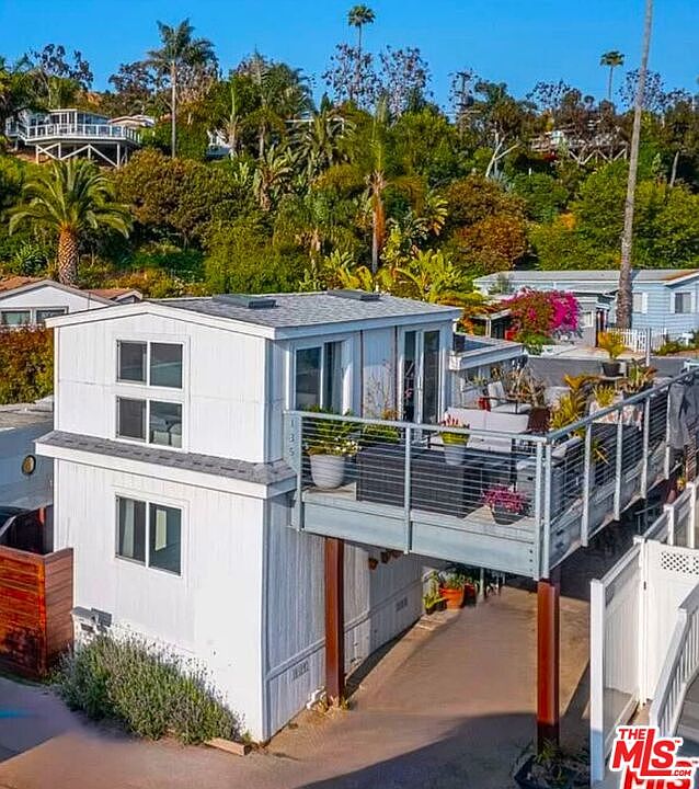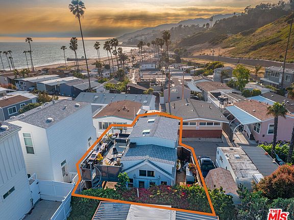 Stunning Ocean-View Beach Home in Pacific Palisades. Experience luxurious coastal living nestled in a private, highly coveted location in Pacific Palisades. This turn-key, two-level residence seamlessly blends sophistication with functionality, offering unobstructed views of Malibu, Point Dume, and the iconic Queens Necklace. The home's standout feature is its expansive 330-square-foot custom steel deck, designed for effortless indoor-outdoor living. Equipped with spiral stairs for easy access and breathtaking panoramic oceanfront views, this deck serves as the perfect space for relaxation or entertaining, with endless sea vistas as your backdrop. Inside, the main level features soaring 11-foot cathedral ceilings, creating a spacious and airy ambiance. The second story, with 7-foot ceilings and skylights, bathes the home in natural light. A cozy breakfast nook and additional seating areas add to the inviting atmosphere, ideal for casual gatherings. The master bedroom offers direct access to the deck with ocean views, while a second or guest room ensures space for family or visitors. Built with durability and safety in mind, the home is equipped with a fire-retardant redwood fence, stairs, and high R-value insulation. The exterior is clad in durable Hardie board, and modern appliances, including a 2021 dishwasher upgrade, ensure a move-in-ready experience. Plumbing is in place for an outdoor shower, ideal for rinsing off after beach trips. Convenience is paramount, with close proximity to Palisades Village, top-rated schools, and easy beach access via a nearby crosswalk on PCH. The property includes a 2-car covered parking space, guest parking, and ample storage. Community amenities include a heated pool, hot tub, billiards room, and recreational area, offering endless opportunities for relaxation. With low space rent of $941 per month, rent control, no annual property taxes or HOA fees, and financing options available. This beach home presents a rare and affordable opportunity to own a piece of paradise across from the beach.