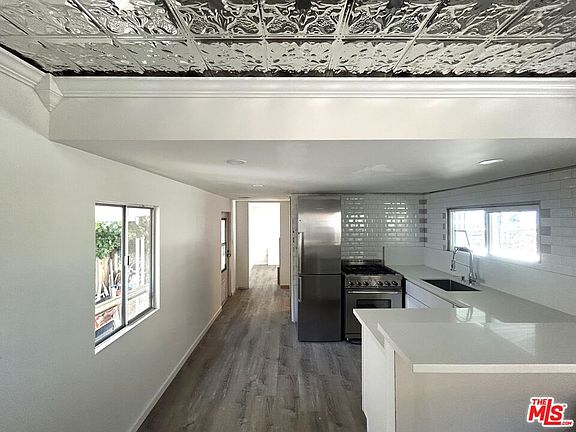 An affordable location across from the beach in the highly sought-after Pacific Palisades ! This charming one-bedroom, one-bathroom home is in a peaceful manufactured beachside community. With a 1,400 square foot lot, this property offers endless potential. The home's exterior is a blank canvas awaiting your personal touch, allowing you to choose siding, trim, and paint colors that will truly enhance its curb appeal. Inside, the open floor plan is flooded with natural light, creating a bright and airy space that's perfect for relaxing or entertaining. Partial drywall has already been installed, and electrical upgrades have been made, giving you a head start on transforming this space into your dream home. The living area boasts elegant custom ceiling tiles that reflect the recessed lighting, complemented by a striking wood panel accent wall. Newly installed hardwood laminate flooring adds warmth and style throughout the home. The renovated kitchen is a chef's delight, featuring custom cabinetry, a quartz countertop breakfast bar, ceramic glazed tile backsplash, and brand new high-end stainless steel appliances, including a Bosch Benchmark refrigerator, Tecnogas Superiore oven range, and a Kraus professional-grade faucet. The remodeled bathroom offers a spa-like experience with a Vigo Ellington Thermostatic Shower Panel and Kraus faucet, set against beautiful Okoboji tile flooring. Additional modern features include a new tankless water heater for energy efficiency and partial ocean views from the bedroom. One of the standout features of this property is the option to install a two-story home or custom build a sundeck, allowing you to enjoy stunning unobstructed beach views and mesmerizing sunsets. The covered carport provides space for two vehicles, and the community offers direct access to the beach via a safe crosswalk, making it perfect for swimming and surfing. This rent-controlled community includes fantastic amenities, such as a heated swimming pool and hot tub. It's also conveniently located near top-rated schools, scenic hiking trails, a bike path, and a variety of local shops and restaurants. Don't miss your chance to own a unique property in this prime location!