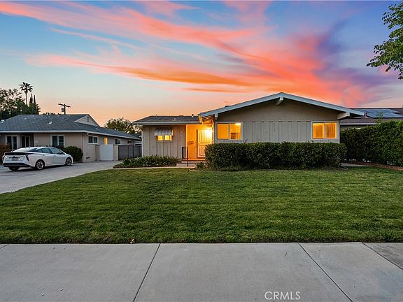 Nestled in the highly desirable Granada Hills enclave, this delightful mid-century home offers the perfect blend of vintage charm and modern comfort. Located on a quiet, tree-lined street, the home is surrounded by a welcoming community of well-maintained residences, making it an ideal place for family living. As you approach the home, a charming front porch invites you to step inside and explore its timeless appeal. Original hardwood floors, floor-to-ceiling windows, and classic architectural details create a warm and inviting atmosphere throughout. This spacious home features three bedrooms and two bathrooms, offering ample room for both relaxation and entertaining. The vintage cook’s kitchen is a true gem, with ample cabinet storage, tile countertops, a gas oven and range, dishwasher, and refrigerator. Conveniently located adjacent to the kitchen, the laundry room offers extra storage and provides access to the backyard. The inviting living room is perfect for unwinding, featuring hardwood floors, recessed lighting, and large windows that overlook the serene backyard. The separate dining area, illuminated by a contemporary light fixture, provides a sophisticated setting for meals with loved ones. A French glass door leads to the private backyard, enhancing the home's seamless indoor-outdoor flow-ideal for California-style entertaining. The generous primary bedroom offers hardwood floors, a ceiling fan, and an en-suite bathroom with a tiled stall shower and a vanity area. Two additional light-filled bedrooms feature ceiling fans, nice closet space, and hardwood floors. These bedrooms share a full hallway bathroom with a tiled shower-over-tub and a large vanity. Step outside to your private backyard oasis, where a mature orange tree, covered patio, and spacious grassy area await, providing a perfect setting for outdoor dining, relaxation, and gatherings. The detached two-car garage offers plenty of storage and convenience, complete with an automatic door opener. With thoughtful updates such as a central air and heat, a tankless water heater, most copper plumbing and a 100-amp electrical panel, this home combines modern amenities with its timeless mid-century character. The potential for a free-standing Accessory Dwelling Unit (ADU) in the spacious backyard adds further opportunity for customization. Conveniently located near schools, freeways, shopping, and restaurants, this home is ready for you to move in and start creating lasting memories.