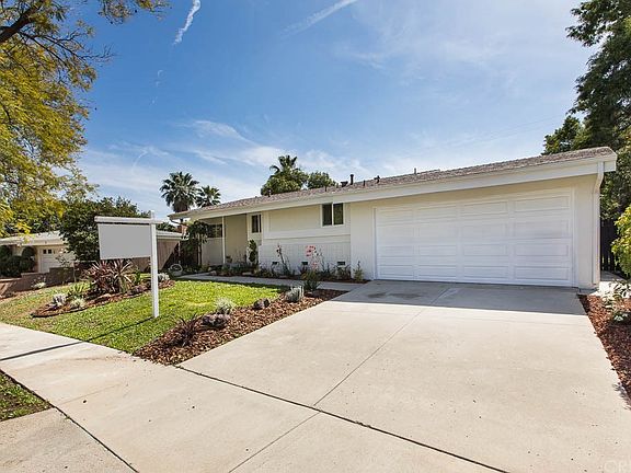 Location! Location! Location! Beautifully remodeled mid-century single family home is nestled on a large 7,840 square foot lot on a quiet tree-lined street. New exterior and interior paint as well as newly landscaped front and rear yard. An open floor plan and restored original oak flooring has been completely refinished with modern look. The spacious family room & living room is bathed in natural light & further enhanced by vaulted wood-beamed ceilings, recessed LED lighting, wall to wall brick fireplace, and views of the lush backyard. Modern white shaker kitchen cabinetry with Quartz counter-tops and handy breakfast bar, new Samsung stainless-steel appliances include stove, microwave, dishwasher and refrigerator. Dining room has plenty of space for large gatherings and leads to the open kitchen. A total of 3 spacious bedrooms and 2 remodeled baths. Rear master bedroom with oak flooring, new closet doors and views of back yard. Remodeled bathroom includes new tiled shower and tub with gorgeous Quartz counter-top and new vanity. Two additional spacious bedrooms are complete with oak flooring and plenty of closet space. This home also includes new dual-pained windows throughout, central heating and air, copper plumbing and private indoor laundry room with washer/dryer hookups. Attached 2-car garage with automatic door provides direct access. Private entertainer's backyard with covered patio, mature shade tree, lemon tree & large grassy yard with automatic sprinklers.