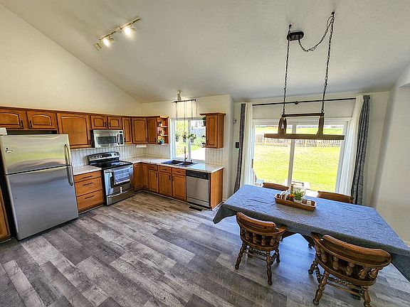 - Offer pending - On the market for backup offers only. Come check out this three bed, two bath home, located in the highly desirable Stone Ridge subdivision. You will love the vaulted ceilings as you enter the home, which continue into the kitchen. The kitchen has recently updated countertops and tile backsplash with a composite granite sink. Moving through the open concept kitchen and living room you will find an updated living room and fireplace. There are brand new (August 2022) carpets on the stairs and in all three bedrooms. The master suite boasts a modern accent wall, and new tile floors in the master bath. This home also comes equipped with a fully finished basement with full bath and wet bar complete with granite counter tops. You will also benefit from the spacious three car garage! Have plenty of room for both your cars and a workshop The cherry on top with this home is you are less than a block away from a park, and splash pad. Not to mention the Blue Ribbon award winning elementary school in the neighborhood!