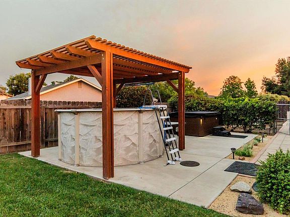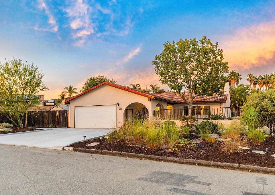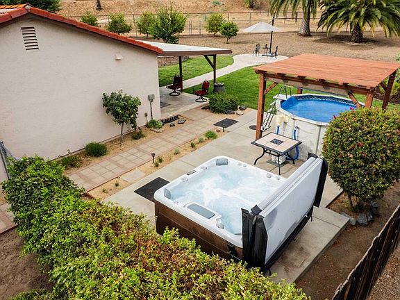 Welcome to 16327 Scarbery Rd, a beautifully updated home with ground mounted owned solar, tucked away on a peaceful non-through street in Ramona. From the moment you arrive, you’ll notice how well this home has been cared for—starting with the newly poured driveway and front hardscape completed in 2024, giving the property clean curb appeal and a welcoming entry. Inside, the kitchen was fully remodeled by Kitchen Barn, featuring rich cherrywood cabinets with an amaretto finish, soft-close drawers, and a smart layout that opens to the main living areas—perfect for both everyday living and entertaining. Both bathrooms have also been professionally renovated by Kitchen Barn, with modern upgrades that include Quartz countertops, updated cabinetry, and custom tile work using high-quality Kohler and Delta fixtures. In 2023, the home received a brand new HVAC system and heat pump from Carini, ensuring energy-efficient comfort throughout the year. The bedrooms feature plush Stainmaster carpet, and the exterior was refreshed with Tex Cote Coolwall paint, known for its long-lasting finish and ability to help keep the home cooler in warm weather. Step outside to a private backyard designed for relaxing, gardening, and enjoying the Ramona lifestyle. The space includes a sparkling pool, hot tub, pergola, and newer landscaping, creating an inviting atmosphere for gatherings or quiet evenings. A garden area and outdoor shed provide plenty of space for hobbies or homegrown produce, and the fully fenced yard offers peace of mind for pets, kids, or anyone who values a little extra privacy. One of the standout features of this property is the wide variety of mature fruit trees, including fig, lemon, tangerine, pomegranate, cherry, grapes, and even a unique fruit cocktail tree producing peaches, plums & apricots—delivering seasonal harvests from your own backyard. This location offers even more than what’s within the fence. Step outside to nearby horse trails, hiking, parks, equestrian center, a golf course, and all the charm and community Ramona has to offer. If you’ve been dreaming of more outdoor space, a manageable-sized home with smart upgrades, and a lifestyle that brings nature right to your doorstep—this is the one. Whether you're a first-time buyer ready to plant roots or someone looking to downsize the house and upgrade your yard and lifestyle, this home has it all.