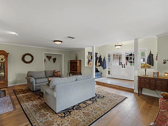 Nestled on a quiet cul-de-sac in the highly desireable neighborhood of Green Valley, this stunning single-level ranch-style home offers a farmhouse charm on .73 acres. The main house features four spacious bedrooms and three full bathrooms. A detached pool house with a half bath adds convenience for outdoor entertaining. The expansive yard is a haven with a gazebo, pool, spa, sport court, and cozy fire pit. Enjoy evenings under the stars on the large covered patio equipped with heaters.