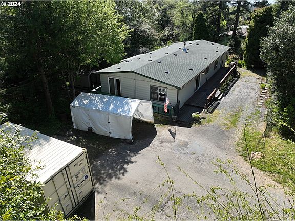 Welcome to your cozy retreat in Brookings! This 3-bedroom, 2-bathroom manufactured home offers comfortable living in a peaceful setting. Nestled on a spacious corner lot at the end of the road, enjoy this location's privacy and tranquility.Inside, you'll find an open-concept layout that seamlessly flows from the living area to the kitchen and dining space. The kitchen features a granite island and ample storage, making meal prep a breeze. Adjacent to the kitchen, a convenient laundry room adds to the home's functionality.The spacious living room boasts a woodstove, perfect for cozying up on chilly evenings. With a newer three-year-old roof, you can rest easy knowing your home is well-maintained. The cargo container, greenhouse, and carport shelter are included. According to the seller, a small stream borders the property and provides a soothing sound of gentle flowing water. Outdoor enthusiasts will appreciate the RV parking and hookups, which are ideal for storing recreational vehicles. Step outside into the backyard oasis with a tranquil pond and fenced yard, offering a peaceful retreat for relaxation or entertaining. Additionally, a shed provides storage space for wood or garden tools.Conveniently located near shopping, entertainment, local beaches, and the Port of Brookings, this charming home offers easy access to amenities and activities. Don't miss out on this lovely home. Schedule a viewing today and discover the comfort and convenience it has to offer! Ask to see the 3D tour!