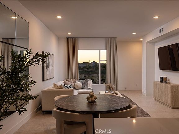 This newly built luxury townhome in The Landing at Tustin Legacy offers the perfect blend of modern sophistication and everyday convenience in one of Orange County's most desirable new communities. Completed in 2023, this light-filled contemporary home welcomes you with an open-concept layout featuring soaring 12-foot ceilings, imported Italian stone floors, and sleek matte black designer finishes that create an atmosphere of understated elegance. Enter the 3-story plan through the thoughtfully designed lower level that includes an ensuite bedroom (or optional office or fitness room) and direct access to the two-car garage. This space also opens directly to a sunny patio, bringing the outdoors in and making for a welcoming curb appeal. Large windows fill the second-level great room with natural light, creating an ideal environment for both entertaining guests and everyday relaxation. The living room flows seamlessly to a private balcony, extending your living area outdoors. The luxe chef's kitchen is finished with full-height maple cabinetry, a complete stainless steel JennAir/KitchenAid appliance suite, and a striking quartz island ready for casual bites and conversation. Upstairs, two generously sized bedrooms each provide ample accommodation with large windows and spacious closets. The primary suite serves as a true retreat, with two walk-in closets featuring professional organizers and a spa-like bathroom with double sink vanity and oversized shower. Modern convenience is built-in, with smart features including paid solar panels, an EV charger, Google Home smart system, instant hot water system, and SpringWell whole-home water filtration system. This property’s excellent location within The Landing community provides views of Disneyland fireworks displays and John Wayne Airport, while being within the boundaries of top-rated Tustin Unified schools. All within walking distance of The District shopping center and entertainment, local parks, and a diverse array of restaurants, creating a lifestyle where luxury living meets unmatched convenience in the exciting heart of Tustin Legacy.