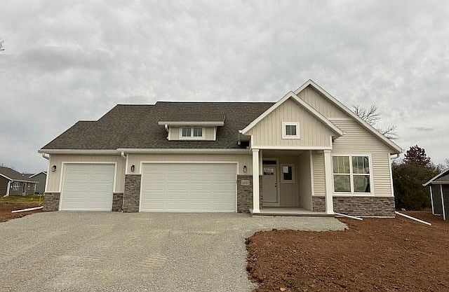 This beautiful 3 bedroom ranch is built by Schmidt Bros. Custom Homes, Inc. It features 9' high ceilings, white kitchen cabinets, granite countertops throughout, white painted doors and trim, a gas fireplace with stone face and a back covered porch. The primary suite includes dual sinks, a 5' shower and a walk in closet. The basement is stubbed in for a future bath, and includes an egress window and radon mitigation system. Concrete driveway, patio and sidewalk included. Estimated completion date is November 7, 2025.