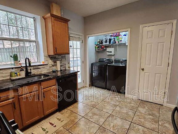 Welcome to 1633 Jackson Way NW in Atlanta's Fulton County. This 3-bedroom, 3-bathroom townhouse offers just over 2,000 square feet of space, built in 2002 with some updates throughout. The kitchen features black granite countertops, a gray ledger panel backsplash, and black fixtures. There's also a separate dining room and two spacious ensuite bedrooms.
