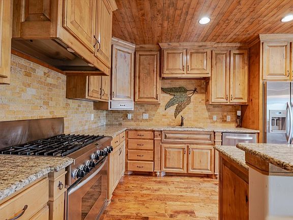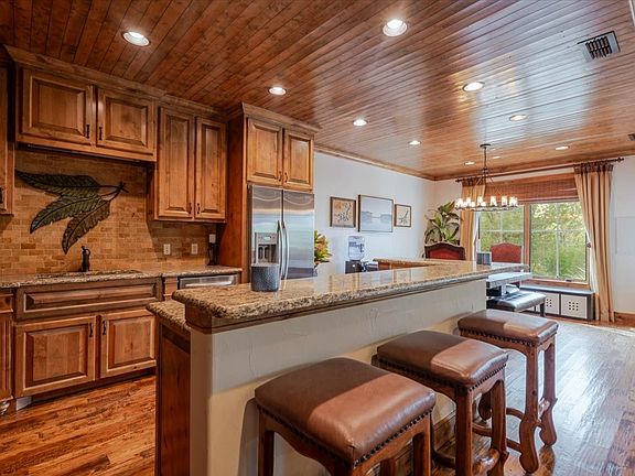 Outdoor kitchenHand-scraped hardwood floorsStainless steel appliancesCovered lakeside patio