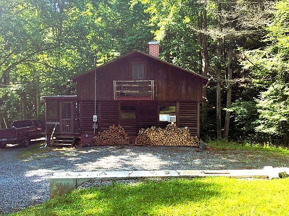 Vintage charm in the mountains! Come see this 1960's built log cabin nestled on 24.595 mostly wooded acres in Grayson County. The cabin features a completely open floor plan with living area, dining area, kitchen and sleeping nook. It includes a full bath on the main floor and an upstairs sleeping loft with private balcony. The two-sided wraparound porch has a screened-in section near the front door and provides a place to take in the mountains while listening to the creek flowing nearby. The unfinished basement has ample storage and easy access from outside. This property is 5 miles to the national forest and 10 miles to Grayson Highlands State Park providing close proximity to outdoor activities. Improvements made by current owners include: new well pump & outside faucet, multiple outlets in cabin, newer plumbing, Dishwasher hookup, added new driveway and large parking area.