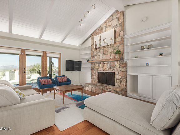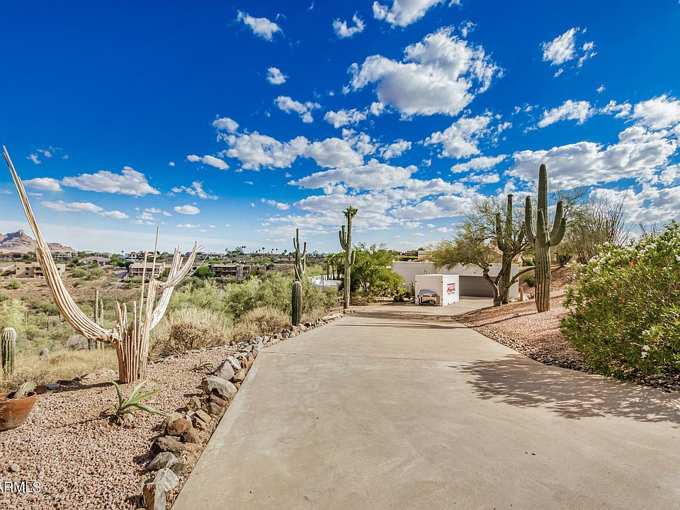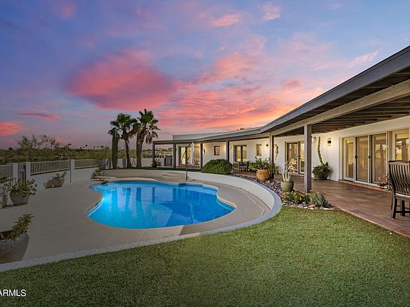 Looking for sweeping, million-dollar views and a cool home to match? You've arrived! Located on a 2.744 acre lot in a custom home neighborhood. This single-level 3 bedroom, 2.5 bath, 2100 sq. ft. tastefully updated home has a late mid-century modern vibe that sets it apart from the ordinary. You must see to appreciate the impressive yet relaxed great room with a beamed vaulted ceiling, hardwood floors and handsome stone fireplace. High-quality patio doors in great room and bedrooms open out to the covered patio and pool area where the majestic Sonoran desert and mountain views will take your breath away. From evening star-gazing or morning sunrise over the mountains, you'll create memories to last a lifetime in this unique gem of a home! Hurry -- won't last!