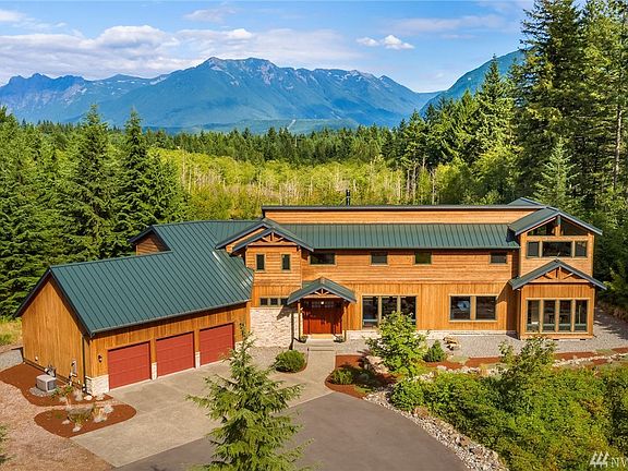 Private Northwest living nestled in unique gated Uplands Reserve Community (510 acre reserve) of North Bend. Stunning custom home on 6 acres was designed w/incredible windows to frame endless views of Rattlesnake Ridge & surrounding mountain ranges. Beautiful interior spaces filled w/natural light. Peaceful everyday living w/ open concept great rm for entertaining. Home theater, Gourmet kitchen, coffee bar/nook, huge office w/spectacular views, master suite w/fireplace. 1100 sqft 3 car gar/shop