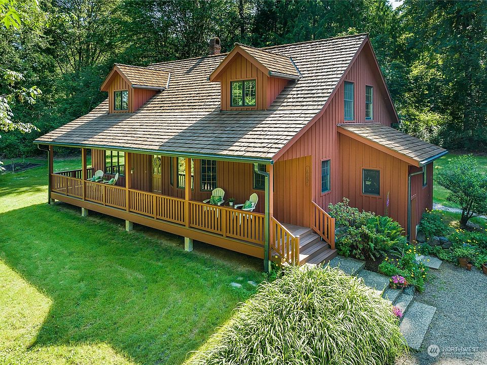 Discover this private haven on 10 acres near Three Lakes—an inviting retreat that feels like your own vacation lodge! This custom-built home showcases meticulous craftsmanship, with open beam ceilings, hardwood floors, wood wrapped windows, and a charming Russian fireplace/stove. Sip coffee on the covered porch while enjoying wildlife. Large windows and French doors bring verdant views of nature inside. Ideal for remote work, with a cozy den, office, and bedroom options. Expansive unfinished basement and garage plus loft offer endless choices—from additional living space to possible ADU potential. Large 28'x48' shop/barn wired for projects. Come experience the serenity of country living with easy access to urban conveniences. Pre-Inspected.