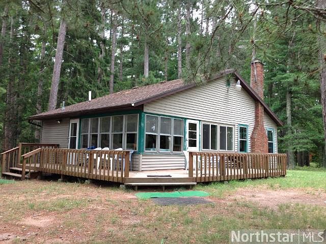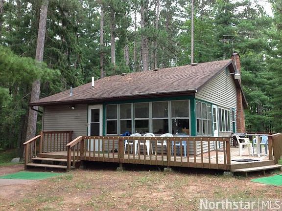Superb lakefront setting! Large private waterfront parcel with mature trees and excellent level lakeshore. Seasonal cabin with very nice porch/sundeck overlooking the lake. A rare combination of privacy and lakeshore that can't be beat!