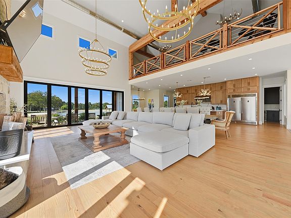 Welcome to Freundschaft Ranch, a off-grid retreat on over 160 acres of breathtaking Texas countryside.Property includes 5000 sq ft main house, two cottages, multiple lakes w/docks and cabanas, horse barn and large scale party barn. The thoughtfully designed property offers the perfect blend of comfort and rustic charm.Powered entirely by solar energy/sustained by pristine well water, the ranch embodies sustainable living.Enjoy breathtaking views of tranquil lakes from the expansive windows and ceilings of the great room.Main house includes 4 primary bedrooms, each w/en-suite bathroom. Relax in the movie room, unwind in the cold plunge, or entertain in the speakeasy lounge. The 2 cottages include 2 BD, 2 full baths and loft area for additional guests. Cottages have full kitchen and wood flooring throughout.Party Barn is designed for entertainment w/20-person couch, bar, 3 lg. tvs. Experience the serenity and beauty that make this ranch truly special.