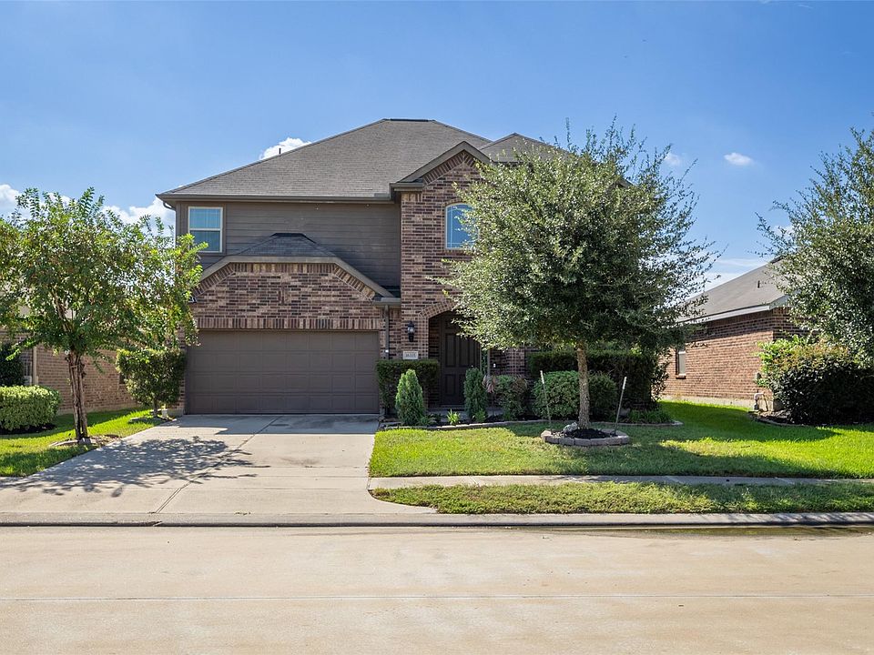 Gorgeous home featuring soaring ceilings and a gourmet kitchen with a large island and granite countertops that flows into to a spacious family room. Elegant formal dining room. The large primary suite boasts an entire wall of bay windows bathing the space in natural light. Upstairs offers a huge game room and generously sized secondary bedrooms. A charming front porch with graceful arches enhances the home’s curb appeal. The expansive backyard includes a functional outdoor kitchen, covered patio, and a handy storage shed. Conveniently located just minutes from HWY 6, shopping, and major highways.