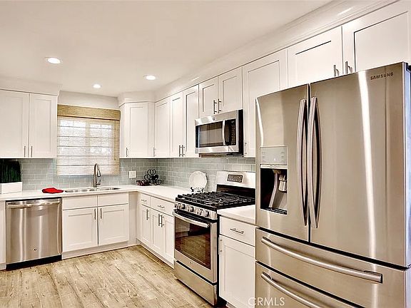 Spectacular and contemporary. This completely remodeled 4 bedroom, 2 bath single level home is warm and inviting. From its open concept floor plan to its classic updating you will fall in love with this home. Featuring stainless appliances, granite counter tops over shaker style cabinetry, subway tile back splash, easy care wood laminate flooring, energy efficient windows, tank less water heater, two huge yards and even an epoxy coated garage floor. Close to schools, beach, shopping, Golf and freeways. Every detail has been attended to, so that you don't have to. Are you ready to move into your forever home? This is it