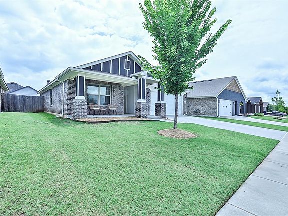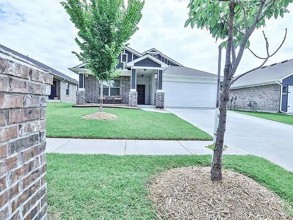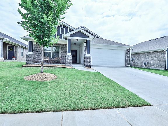 Welcome home to this classic modern farmhouse in the sought neighborhood Feather Stone. This 3-bedroom 2-bath charmer boasts a split layout with the primary suite located at the back of the home, separate from the guest bedrooms. The open-concept floor plan allows for plenty of entertaining, with the kitchen, living room, cabinets to the nooks on both sides of the fireplace, and dining areas all connected. The home has beautiful quartz countertops with a classic white tile backsplash, and a mudroom. Enjoy a beautiful Oklahoma sunset on your covered front porch or enjoy a cup of coffee on your covered back patio. Conveniently located and close to shopping. Moore schools. This home offers numerous options, so schedule your private showing now and make it your home today!