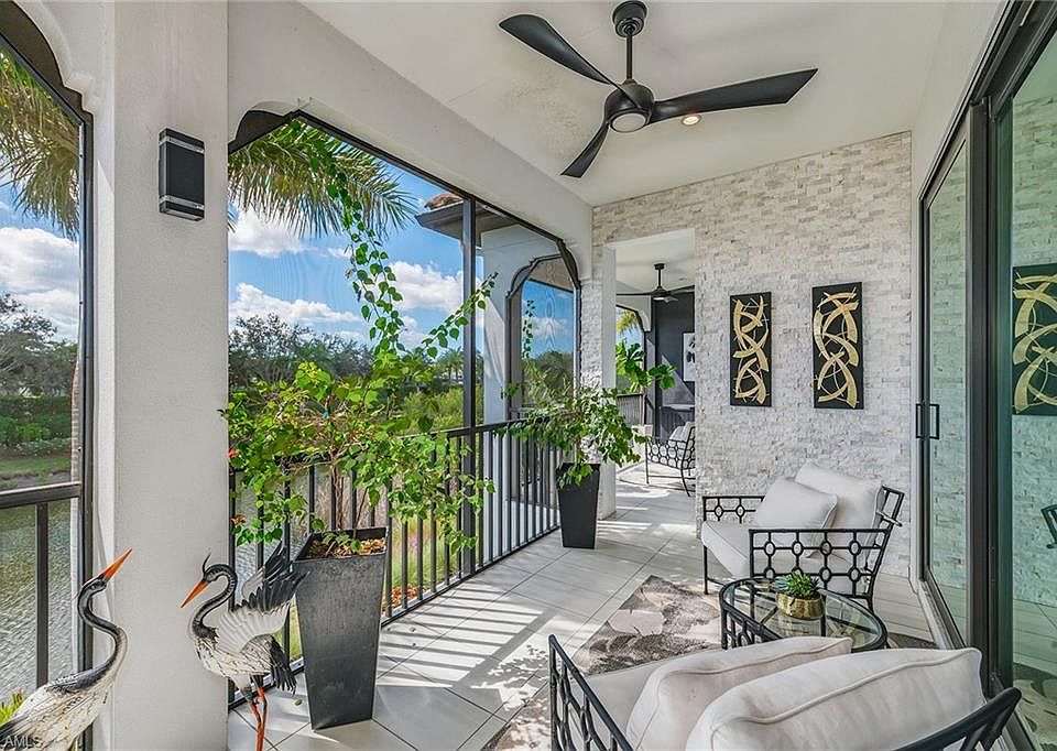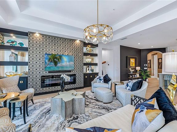 Sports membership included. Enjoy the feel of a single-family home while having the low maintenance benefits of a coach home This 3,382-square-foot residence lives like a single-family home. Enter from your private, intimate courtyard into a large open foyer with bright soaring ceilings and a private elevator. This level offers easy access to the enclosed two-car garage. Built in 2020, this entire home has been upgraded with designer furnishings that will wow you. This spacious open floor plan blends indoor and outdoor living effortlessly. From the foyer, you can take your private elevator to the second level or take the stairs to the open loft area which can be used in so many different ways. Office, den or music room, your choice. Two en-suite bedrooms offer privacy for family or guests. The spacious primary bedroom includes double sinks, soaking tub, huge shower as well as a large built out closet. The kitchen is gourmet with a natural gas six-burner cooktop, high-end appliances and a large walk in pantry and laundry room. A bar area with a wine cooler is convenient to the dining room area. The sun-filled living room with its linear fireplace leads directly to the large lanai and summer kitchen with a gas grill and beverage refrigerator overlooking a beautiful, tranquil landscaped area and lake. This coach home is in the much sought-after Talis Park with amenities that include tennis, bocce, pickleball, two pools, fitness, dog park, walking trails, active social events and of course the beautiful award-winning golf course. Talis Park is a vibrant active community where all are welcome!
