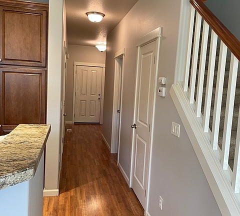This gorgeous end unit has its own private fenced backyard complete with covered patio (equipped with sun shades) and a garden shed. Bright, open great room/kitchen. Kitchen has a nice sized pantry and a closet nearby for additional kitchen storage as needed. The counters are granite and the range is gas. The primary bedroom is big and comes with a walk in closet, 2 sinks and a bathtub and shower. All the bedrooms have room darkening shades installed to ensure a restful nights sleep. Brand new washer and dryer in a good sized laundry room too.