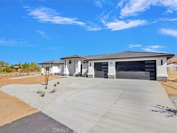 NEW CONSTRUCTION! This BEAUTIFUL 4 bedroom 3.5 bathroom contemporary split floorpan home features an open concept with MASSIVE living area open to the kitchen, 2 master suites, VIEWS OF THE WHOLE VALLEY from this FLAT CORNER LOT and so much MORE! The spacious kitchen features a large center island, quartz counters, pendant and under cabinet lighting, soft close cabinets and drawers, breakfast nook, walk in pantry, double oven and is open to the living space which boasts high ceilings, modern fireplace, recessed lighting, and wood-look tile flooring. The 2 master suites each have large en-suite bathrooms with custom walk in showers with frameless glass enclosures, dual vanities, and HUGE walk in closets. The main master also features a large soaking tub. This ENERGY EFFICIENT home includes OWNED SOLAR, tankless water heater, low-E windows, and Energy Star appliances. The oversized 3 car garage provides plenty of space for your toys! Additional features of this HIGH QUALITY home include full-width covered back patio, indoor laundry / mud room, with utility sink and 1/2 bathroom, and tons of storage. Quality and attention to every detail is evident throughout. This AMAZING home sits in one of the BEST NEIGHBORHOODS in Apple Valley and has VIEWS! This is truly a MUST SEE property!