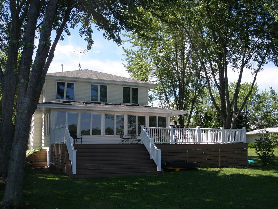 Lake life! Can it get better than this? Welcoming 3 Bedroom, 3 full bath lakefront home situated on a double lot (.55 acres) has what you have been waiting for! Enjoy the gorgeous lake views from the deck or great room that offers multiple skylights, a wall of windows plus two sliding glass doors, a fireplace and plenty of space for the holidays. Main floor full bath, laundry and bedroom. Plenty of additional sleeping space offered in the loft. The owners suite offers office space, a large walk in closet and double sink bathroom with an extra large jetted tub. This home comes ready for move in and complete with a 12 x 27 storm shelter that can be accessed from the interior or the exterior. Massive 38 x 20 garage with access to the crawl space where the furnace and inline water heater can be accessed. Also! additional rear garage door makes it easy to store your boat! Roof and siding 2007. Concrete driveway. 2 sump pumps+battery backup. Upgrades galore!!