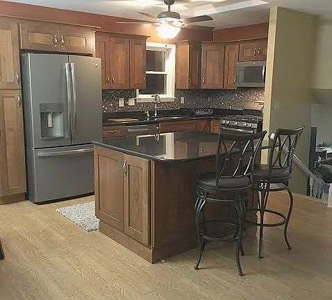 MOVE RIGHT IN to this 4 bed, 2 bath trilevel in Lakes of the Four Seasons. Open concept main level boasts a completely remodeled country kitchen with shaker style cherry cabinets, tile backsplash, granite counters, slate & stainless appliances, & custom island w/ additional storage & seating. Upstairs the master bedroom offers double closets. Main bath provides a large vanity and whirlpool tub. Lower level has an additional living area, 4th bedroom, and large laundry room. New furnace installed in 2011.... roof replaced in 2009. Home sits on a large, newly landscaped lot with deck and patio. Don't miss all this home has to offer along with the many LOFS amenities including dining, boating, fishing, golfing, & swimming!