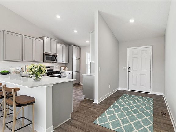 Ask you how you can receive up to $5,000 in closing costs, PLUS an additional $20,000 in incentives on this home! The Rushmore offers an open-concept main level with vaulted ceiling, beautiful kitchen with beautiful light gray cabinets, stainless appliances, quartz counters, and ceramic backsplash. The primary suite has its own private bath and huge walk-in closet. The lower level is comes FINISHED with a second living room, 4th bedroom and a full bath!!! Covered front porch. Fully sodded yard and irrigation also included! Built on a spacious lookout lot. Smart home technology included!
