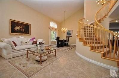 This beautifully upgraded and lovingly maintained Maple Model is on the market for just the first time. This home features soaring ceilings; a dramatic spiral staircase; a stunning trompe l'oeil fresco over the fireplace and the pice de rsistance, the enormous bonus room. Amenities include the stone mosaic entry, tiled first floor, granite island kitchen, central vac and intercom; built in Monogram refrigerator; marble master bath and painted throughout in warm hues. The spacious yard compliments the surprisingly private rear yard, which features and expansive patio cover and flagstone built in BBQ. Almost every window is covered by plantation shutters and the detail of the faux painted on the columns makes you believe they're marble. This is not your average short sale. Part of the Madrona and Blue Ribbon Newbury Park High spheres of influence. Shown by appointment only.