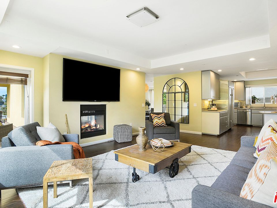 Appreciate the luxury of an elevator opening directly to your own foyer. Your foyer leads to a tranquil sanctuary with comfortable modern living all in a single level floor plan built in 2009. The entire 3rd floor is dedicated to-4 beds & 3.5 baths with 2,520 sf consisting of a balcony that wraps around a 3rd of the unit (only one of its kind) to enjoy "al fresco dining" and taking in the views. A romantic master suite with fireplace, walk in closet, balcony and private spa like bath. The den opens to the kitchen, boasting sleek cabinetry, stone counters, Wolf stove and Sub-Zero fridge. Windows surround adding tons of natural light, beautiful wide plank floors, high ceilings, a spacious living room with double sided gas fireplace, Ecobee thermostat, no common walls, trash chute and inside laundry are just of few of this unique condo's features. This distinct architectural building with only 4 units, one on each level, is located within walking distance to vibrant Westwood Vge, UCLA.