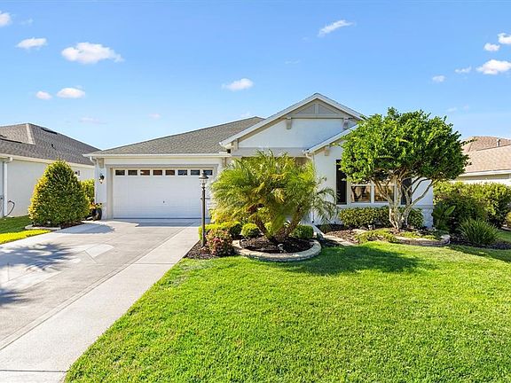 NO BOND! NEW ROOF! Beautifully maintained and expanded SOMERSET Designer (additional 5’ front & back) offered TURNKEY (except lanai & office). Perfectly located between 466 & 466A in the central Village of Mallory, this home showcases a spacious open floor plan with 10’ tray ceilings in the living/dining area and primary suite. The chef’s kitchen has been tastefully updated with new cabinetry, quartz countertops, stainless steel appliances, crown molding, raised breakfast bar, natural gas, closet pantry, pot drawers, and roll-out shelving—ideal for entertaining! The split-bedroom design ensures privacy for guests. The primary suite is generously sized and features a large walk-in closet, dual vanities, Roman shower, and private commode. Two guest bedrooms are roomy—one currently used as an office (no closet)—and the guest bath includes a custom-tiled shower/tub combo. Enjoy 18” tile in the main living and wet areas, new luxury vinyl tile (LVT) in the den and guest bedroom, and carpet in the primary suite. Relax year-round in the “four-season” glass-enclosed, elevated lanai, overlooking mature landscaping, a peaceful fountain, and two serene sitting areas—a private backyard retreat! A must see to appreciate! The oversized garage easily accommodates 2 cars and a golf cart, and includes extra shelving, pull-down attic stairs, and overhead storage. Additional highlights: Inside laundry with utility tub, hand-scraped ceilings, architectural shingles, humidistat, and meticulous maintenance throughout. This home offers the perfect blend of comfort, quality, and Florida lifestyle living in one of The Villages’ most desirable locations!