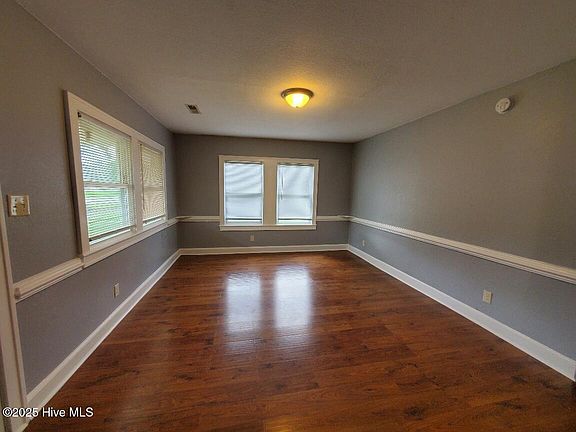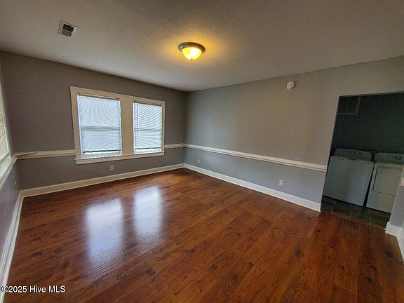 This well-maintained 3BR/1BA home offers comfortable living with plenty of space. It features two bedrooms and one bathroom on the main level, plus an additional bedroom upstairs along with a flex room perfect for an office, hobby space, or quiet retreat. Inside, you'll find a cozy living room and dining area with decorative chair rail molding, and a kitchen equipped with an oven and refrigerator. The home also includes central electric heating and air, a large driveway for ample parking, and sits on a nicely sized lot with landscaping included. Please note: the washer and dryer will not be maintained by the owner. No EIC and no pets are allowed. This inviting property offers a practical layout and convenient access to the nearby US Coast Guard Base.