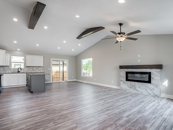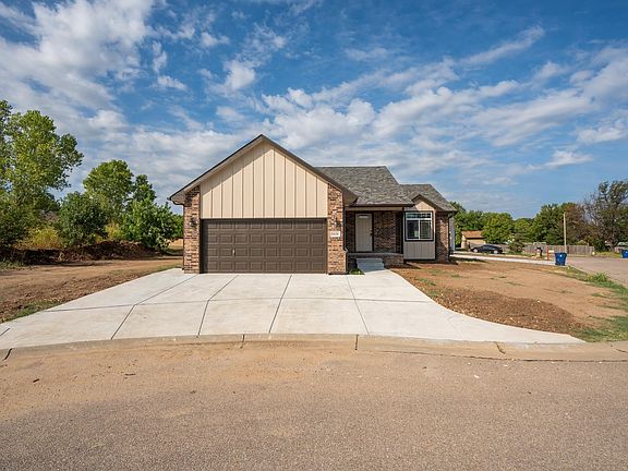 Welcome home to this brand-new built home in Southeast Wichita. 4 bedrooms, 3 bath, 2 attached car garage, covered patio, Open floor plan with beautiful modern finishes, spacious living room with electric fireplace and vault ceiling. The kitchen has granite countertops, an island with an eating bar. The spacious master bedroom has beautiful pocket ceiling, and the master bath features a shower, a double vanity with quartz countertops and two sinks. The basement is fully finished with a large family room. Where can you find a brand-new home with less than 2K left of special tax. All information contained herein is thought to be correct, but is not guaranteed. Agent is related to the seller