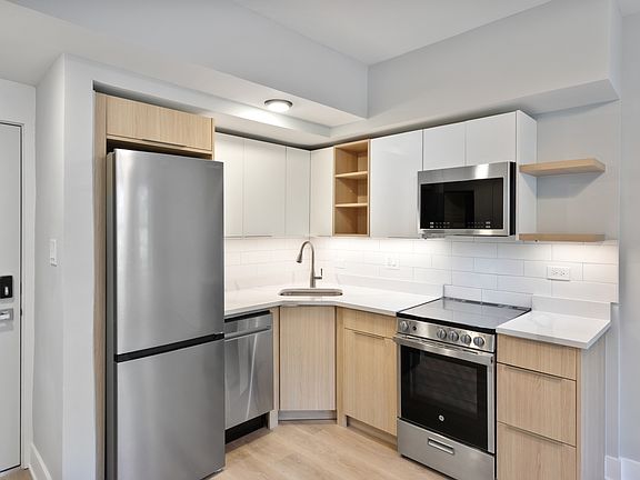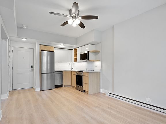 pictures of a similar unit--Modern Studio with In Unit Laundry! Modern Kitchen Cabinets with Under cab Lighting -Quartz Countertops with Deep Undermount Sink -Stainless Steel Appliances including Dishwasher -In-Unit Laundry -Designer Plank Flooring -Ceiling Fan with LED Lighting -Resident Controlled Electric Heat -Pets Welcome (No Pet Rent!)