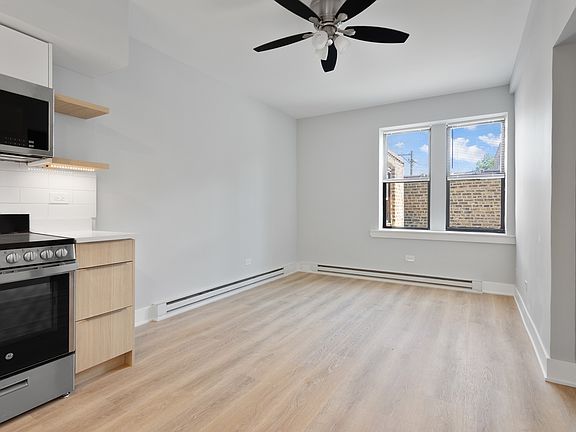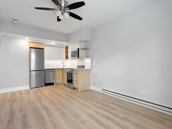 TOP FLOOR!! Modern Studio with In Unit Laundry! Modern Kitchen Cabinets with Under cab Lighting -Quartz Countertops with Deep Undermount Sink -Stainless Steel Appliances including Dishwasher -In-Unit Laundry -Designer Plank Flooring -Ceiling Fan with LED Lighting -Resident Controlled Electric Heat -Pets Welcome (No Pet Rent!)