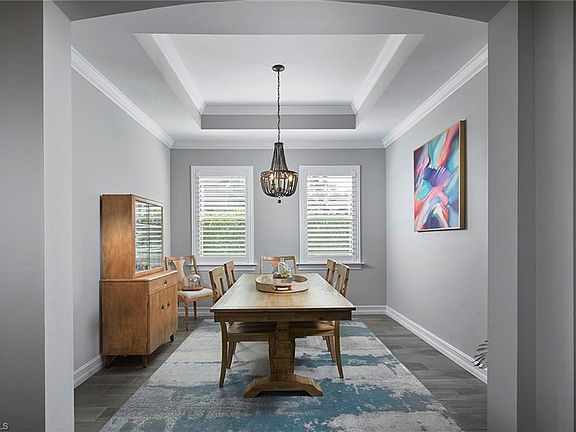 - Interior Features: Cable Prewire, Smoke Detectors, Window Coverings, Pantry, Volume Ceiling, Walk-In Closet, Foyer, French Doors, Tray Ceiling, Coffered Ceiling