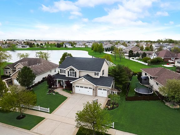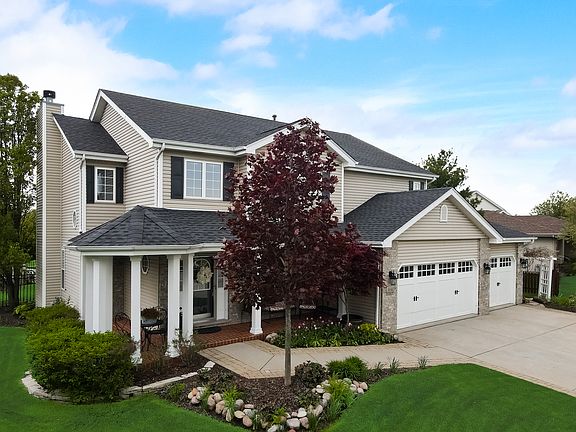Lakeside living awaits in the charming 2-story home with finished basement! An inviting front porch greets you as you enter the home. Gorgeous hardwoods, beadboard ceilings and fresh paint can be found throughout this open-concept floor plan. Chef's will enjoy the eat-in kitchen with a large island, granite counters, tile backsplash and farmhouse sink. The family room is the perfect place to gather, anchored by a timeless brick fireplace. At day's end, retreat to the amazing owner's suite where barn doors lead to a private balcony with serene water views. Entertain family and friends in the finished basement featuring beautiful custom pine woodwork throughout, along with a kitchenette, bar, family room, and half bath. Outside, relax on the paver patio with a built-in firepit, overlooking beautiful views of the water, mature trees, and landscaping. Come see today!