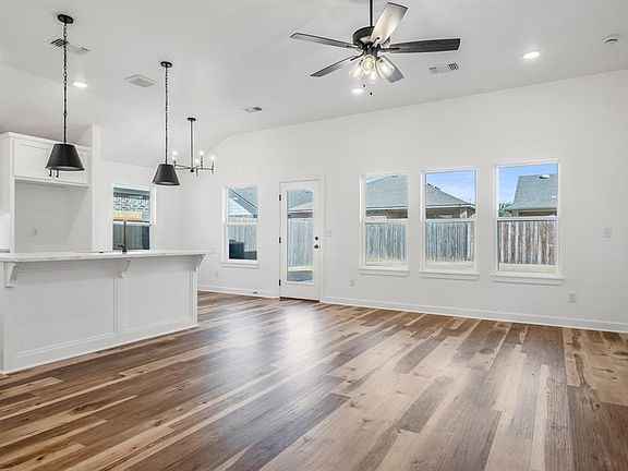 *Reduced over $22,000* This kitchen is amazing complete with a large island, quartz countertops, a gas range, and an ample walk-in pantry, it's the heart of the home. Step into the main living area, and you'll be greeted by luxurious vinyl plank flooring, setting the stage for comfort and style. Each bedroom comes with ceiling fans, ensuring a cool and relaxing atmosphere. Prepare to pamper yourself in the bathrooms, adorned with quartz countertop vanities. In the primary bath, indulge in the luxury of a large tiled shower and a linen closet for all your storage needs. The Featherstone neighborhood features a playground, splash pad, walking trails, beautiful ponds, and short cul-de-sacs. This community offers quick and convenient access to I-35 and I-240, yet maintains a country feel with 42 acres devoted to a common area. Residents of Featherstone enjoy the large playground and gazebo that overlooks the pond and the popular splash pad. Included features: * Peace-of-mind warranties * 10-year structural warranty * Guaranteed heating and cooling usage on more Ideal homes * Fully landscaped front & backyard * Fully fenced backyard. Floorplan may differ slightly from completed home.