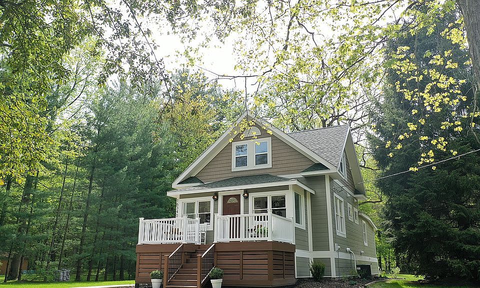Nestled in the heart of Union Pier, this 4 bed, 3 bath craftsman home sits on 2 acres of partially wooded secluded land tucked in at the end of a dead end street. The lot sits adjacent to another 2 acres, open to adding this into purchase. An open floor layout including kitchen, living and dining. Master suite includes Master bath, along w office, separate entrance available. Decks on front and back of home allowing for sun or shade. Outdoor screened porch and stone patio make for great fire pit area. Townline beach, restaurant, shops and bike/moped rentals, a new brewery, are a short bike ride away, less than 2 miles. Great rental/vacation opportunity!