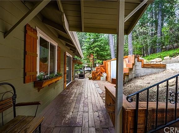 Paradise in the Pines! Welcome home to your 3 bed and 2 bathroom 1,656 Sq. Ft. home built in 1970 tucked under the trees. Enter to the great room with pine wood beamed ceilings, upgraded lighting and engineered wood flooring. The wood burning fireplace will keep you warm and a special cabinet to hold the wood is found nearby. Delight in the beautiful upgraded kitchen featuring Whirlpool appliances, Jenn-Air 5 burner stove, tile counter tops, skylight, cabinets with pull out drawers, newer stove, refrigerator and dishwasher. The 2 bedrooms upstairs have sliders to the deck, ceiling fans and large closets. The guest bath has tile floors, shower in tub and upgraded lighting. Downstairs you will find the indoor laundry, washer and dryer are included. Storage area now used as shop was formerly a one car garage with a loft for extra storage. Also found is a sun room, more storage and the master bedroom. The master has a slider to the hot tub also included. Enjoy the many decks and beautiful trees year round!