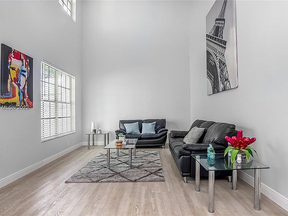 The seller is leaving a 12' tall Christmas tree that fits perfectly in the corner of the living room while boasting over 16' ceilings allowing a full spectrum of natural light to come into the home from the many windows in the home. Location is excellent in the heart of Pembroke Pines, which is minutes to i-75, the malls, an hour from Naples, movie theatres, too much to list. There is a charter school blocks away as well as a public library just outside the development. The home boasts of bright and light to allow the beauty of the detail to shine in and complement all of your furnishings. The street itself is super quiet as it is at the end of the complex, so that your children can play outside but far enough away not to hear any noise from the major road ways, nestled in a quiet corner.