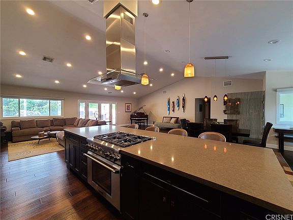 Fully renovated single story show quality house on a private cul-de-sac less than a mile south of Ventura Blvd in prime Encino (highly sought-after Lanai school dist). Large flat lot behind a solid fence and very private, with enclosed front yard and enormous entertainers backyard with swimming pool, covered patio, gazebo, waterfall, and more. Breathtaking great room is over 1,000 square feet with vaulted, 12 ft high ceiling, wood floor, Ceasarstone kitchen counters, 12 ft entertainers island that seats five, stainless Thermador appliances, shaker cabinets, a family room with electric fireplace, wood shelves, and surround sound speakers, a second large seating area, and a dining room. Master suite has two massive walk-in closets and a gorgeous bathroom with tumbled travertine, limestone, two-person Jacuzzi tub, and enormous 2 person shower. Two other bathrooms incorporating slate, Ceaserstone, quartz, and gorgeous tiles. Large laundry room with extensive cabinets and storage. Two car garage also has extensive cabinets and endless storage. Two separate tankless water heaters, three front-facing security cameras, Ring, and countless additional features. Original owner enlarged the home many years ago but did not advise the tax assessor of the additional square footage. Therefore, the home is approximately 300 square feet larger than recorded (floorplans available). This is an awe-inspiring property and a unique opportunity for someone who wants a turn-key dream home, Part.Furn.