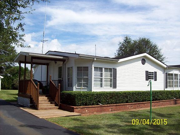Nice home in RV community w/clubhouse & pool. Open floor plan, in excellent condition-great kitchen with lots of cabinets & Island-large closets & fireplace. Entrance porch & nice back porch-paved drive + nice brick work. Jacuzzi hot tub. Has 20'x30' storage bldg & RV hook ups. Must see.