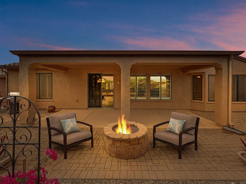 Simply Superb! Highly desirable Borgata with expanded paver patio, citrus trees, and professional landscaping. Backyard features natural gas fire pit and natural gas stub for barbeque. Soothing interior colors and upgraded neutral tile throughout provide the perfect canvas for any décor. This home stands out as VERY well maintained and move in ready. Perfect for entertaining, working from home, or simply living a beautiful, retired life. High end stainless appliances to please any cook. Gas range, granite counters, newer plantation shutters and AC make this the one home that checks all the boxes. Split bedrooms for hosting guests with privacy and joy. Garage features a high grade epoxy floor, newer work bench and storage cabinets. Quick closing possible too!