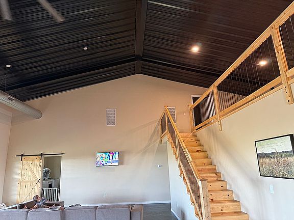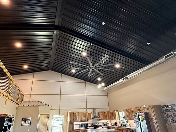 This barndominium was built in Nov 2023, it has four bedrooms and two bathrooms. The house is approximately 3,120 sq feet with a 40 x 20 garage shop that is insulated and has ac/heat not included in that measurement. Gutters newly installed, new safe room in garage, 25 +/- acres, approximately 23 acres fully fenced. Whole house water filter, RO system under sink. Zero carpet!