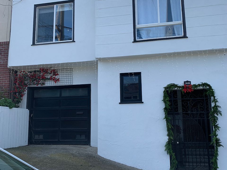 Huge, gorgeous recently updated and landscaped backyard with a large deck and views of the golden gate bridge. Has BBQ, outdoor dining set, firepit.