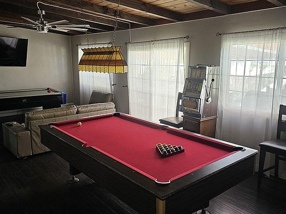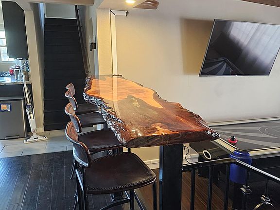 The family room boasts modern amenities such as a smart TV, cozy couch, chairs, pool table, and air hockey, ensuring there's something for everyone in your group to enjoy. Gather around the pool table for a game of 8-ball or unwind on the comfortable couch with a good book.