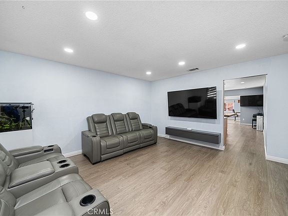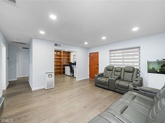 **Enjoy 1,805 sq. ft. of total living space! This includes 1,428 sq. ft. of permitted living area plus a spacious 377 sq. ft. bonus room for added flexibility.** Welcome to this single-story 4-bedroom with a 2-car attached garage. A custom paver driveway leads to the entrance, with a secure gate surrounding the property. The lushly landscaped front yard features beautiful planters and vibrant, colorful foliage, creating an inviting curb appeal. As you step inside, you're greeted by a spacious living room, perfect for relaxation and entertaining. The kitchen is a chef's dream, featuring a center island with pendant lighting, ample cabinetry, stainless steel appliances, and durable LVP flooring. For added convenience, the kitchen is equipped with a butler's pantry offering extra cabinetry and shelving. Adjacent to the kitchen is a cozy breakfast nook, complemented by an additional dining area for your family meals. A versatile bonus room with recessed lighting provides a flexible space for a variety of uses. The primary bedroom boasts a remodeled en-suite bath, complete with an ADA-compliant walk-in shower featuring upscale gold fixtures. Two additional bedrooms are beautifully designed with recessed lighting and newer panel entry doors. One of the bedrooms is currently being used as an open-concept office space, offering flexibility to fit your needs. Both bathrooms have been thoughtfully remodeled and upgraded with modern finishes. The entire home is illuminated with new LED lighting and features dual-paned windows throughout, ensuring energy efficiency. The newer LVP flooring throughout adds a sleek, modern touch, while the Smart thermostat keeps your home comfortable year-round. The private backyard is fully landscaped with mature fruit trees such as pomegranate, avocado, orange, persimmon, and more, offering a bountiful harvest year after year. A storage shed is included for extra space, and custom pavers enhance the outdoor living area. Additionally, the newer AC unit and solar system provide both comfort and energy savings.