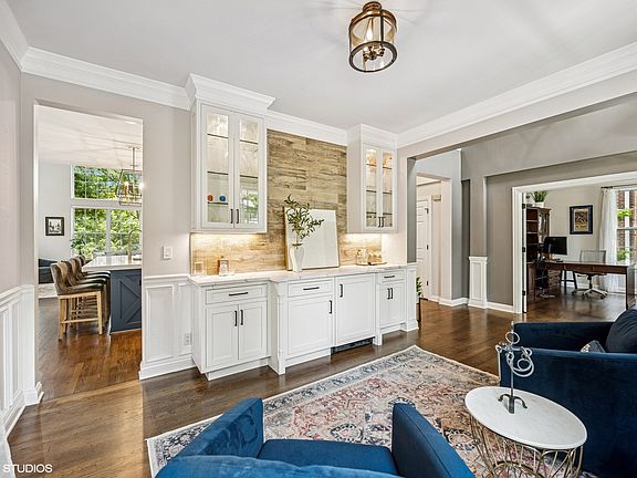 SOLD BEFORE PROCESSING - Stunningly updated 5bed/3.1 home in the heart of the Glen with Glenview's Nationally ranked schools. This beautifully appointed home boasts a New Roof, Updated Kitchen and 3 newly renovated bathrooms, along with 2 first floor offices in addition to the 5 bedroom layout. Perfect functionality and flexibility for today's busy families with open flow and soaring ceilings with gorgeous natural light throughout. On your first floor, walk in through your welcoming front porch to a front sitting area with custom built in bar, first floor office with French doors, additional bonus room/2nd office tucked away behind your walk in mudroom and powder room, and then your show stopping 2 story family room with gas fireplace and custom builtins with perfect open concept flow to your updated kitchen with quartz countertops, breakfast bar, eat-in dining and a coffee bar with extra storage. Upstairs, find 4 bedrooms and 2 full updated baths including your primary bedroom with walk-in closet and large primary bath with soaking tub, dual vanities, and separate shower. The basement boasts tall ceilings, custom built in entertaining center, updated LVP flooring, separate workout area, and 5th bedroom with full bath along with a large storage area. Outside be wowed by one of the largest lots in Chapel Crossing! Not only is it one of the deepest lots, but these original owners did amazing long term planning with professionally landscaped privacy trees surrounding your fully fenced yard and a beautiful outdoor dining oasis complete with stone fireplace and seating wall for amazing backyard entertaining. Glenview's Nationally Ranked Schools, Updates throughout, Walkability to shops, restaurants, Metra, grocery, parks, library, and schools....what more could you want? Welcome Home!