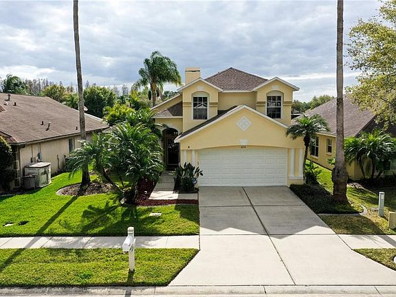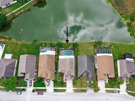CALLING ALL SUNSET WORSHIPERS - THIS IS THE HOME FOR YOU! - Enjoy the spectacular sunsets over the water as you sip your favorite drink from your expanded brick paver, screened-in lanai featuring a salt water, self-cleaning, heated pool and jacuzzi! And how about a two story, 3 bedroom, 2.5 bath with a soaring two story great room with wood burning fireplace and African Mahogany engineered hardwood flooring throughout including the dining & downstairs master bedroom? The kitchen features granite countertops, S/S appliances, tile backsplash & eat-in space. Upstairs includes 2 more bedrooms, full bath with granite counters & an open loft area - great for an office or play area. Other features include reclaimed water for irrigation, all appliances stay, security system, new interior & exterior paint, new frig, new carpet upstairs, newer roof (2014), tankless water heater, newer low flush toilets, French doors, water softener, gutters & downspouts. Meadow Pointe features all 'A' rated schools all within the community, multiple clubhouses, expanded fitness center, 2 pools, tennis courts, shuffleboard, outdoor basketball & sand volleyball courts. Meadow Pointe is strategically located within 10 minutes of 2 interstates, Advent Health hospital, 3 major malls, largest ice hockey complex in the Southeast and other numerous shopping, restaurants and entertainment opportunities. Make your appt today!